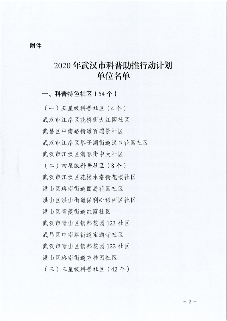 关于2020年武汉市科普助推行动计划评审结果的通报