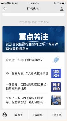 线上,每天通过微信群、微信公众号推送有针对性的科普防疫信息,组织各街科普志愿者广泛宣传,目前已累计推送科普防疫信息800余篇,同时借助科普信息化平台,每天推送防疫最新咨询和科普知识,打造“疫情不解除,科普不掉线”品牌。