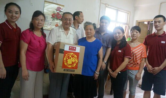 9月27日,社区工作人员搀扶20多名空巢、独居、高龄老人来到活动现场集体过节。大家欢聚一堂,抚今追昔, 寒喧声,欢笑声此起彼伏,幸福的笑容洋溢在每个人的脸上。同时周大福公司的志愿者亲手为老人准备了节日蛋糕和现场包饺子,他们把切好的蛋糕和包好的饺子一一送给老人品尝,还上门给困难老人家庭送去慰问品。