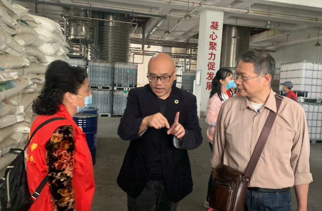 稍作休整后,社区代表一行来到武汉光华科技集团有限公司,参观自动化生产车间,了解聚谷氨酸发酵生产、分离提取等技术。据介绍,武汉光华科技集团有限公司/湖北省未来农业产业研究院,是国内聚谷氨酸的前三大企业之一。