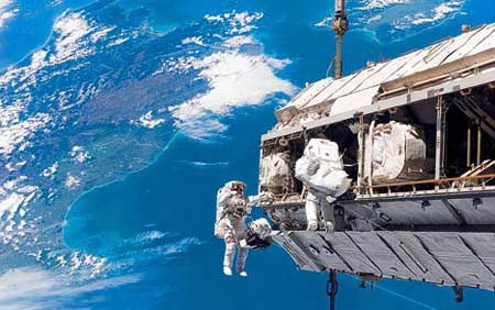 国际空间站至今已服役10年,平均90分钟绕地球一周,以太阳能为动力。国际空间站是为了科学研究和进一步分析人类在太空的生存能力而建的,为未来人类登上火星做准备。预计于2010年完成并希望能服役到2016年。目前国际空间站规模已发展至14个舱,其中包括起居舱、走廊、实验室、储藏室和间隔间。
