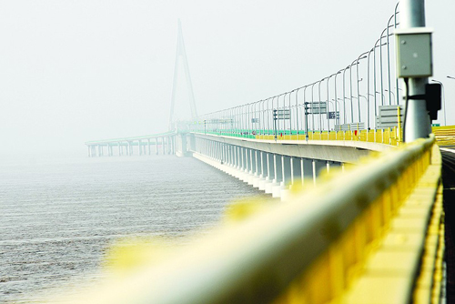 杭州湾跨海大桥工程建设已经进入扫尾阶段,大桥建设“以人为本,细节中体现科技和安全”。大桥中间的隔离带不是绿化带,而是一块块的板状物。这是防眩板,全桥共有7.2万多片。大桥的护栏被漆成了七种颜色,每一种颜色约5公里,从南岸到北岸依次为赤、橙、黄、绿、青、蓝、紫,整个大桥由此看上去就像海上的一条“七彩长虹”。工作人员说,之所以漆成七色,是为了防止司机在行驶过程中产生视觉疲劳,增加安全系数。