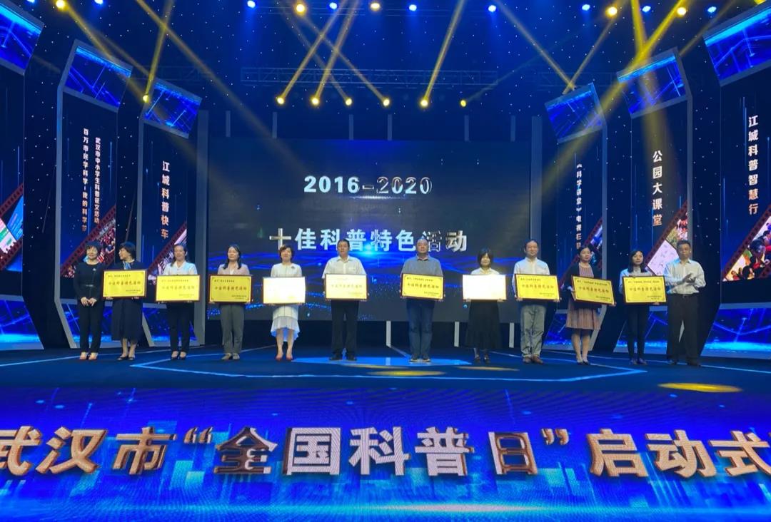 活动现场为2020年武汉市科普特色社区、科普特色乡村、科普特色乡村基地、科普特色学校代表授牌,同时为科普典型“四个十佳”(十佳科普读物、十佳科普教育基地、十佳科普特色活动、十佳科技志愿者)代表授牌。