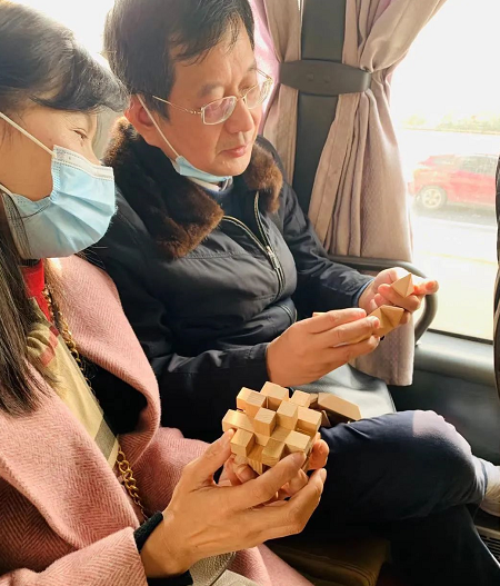 在车上,举行了“孔明锁”的拼装比赛,大家跃跃欲试,带着不服挑战了这一千百年来智慧的产物。相传这是三国时期诸葛孔明根据八卦玄学的原理发明的一种玩具,孔明锁及其所代表的卯榫结构是形成中国传统木建筑结构的基础。“看上去简单,却有六十多个品种,其中奥妙无穷,不得要领,很难完成拼合。”湖北邮电规划设计有限公司总工程师王庆感叹,中国古代的城市文明也正是在这种智慧的支持下营造和发展起来的。