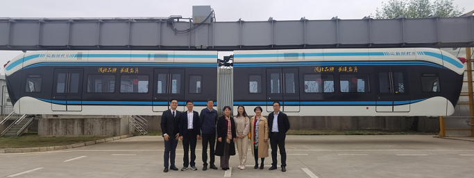刘主席一行在中铁科工江夏制造基地参观了空轨静调车间,听取了空轨产业的发展方向、产业链结构、市场前景以及空轨系统主体结构、控制系统、优势特点、核心技术等方面的汇报,并试乘体验了“新时代号”空轨。