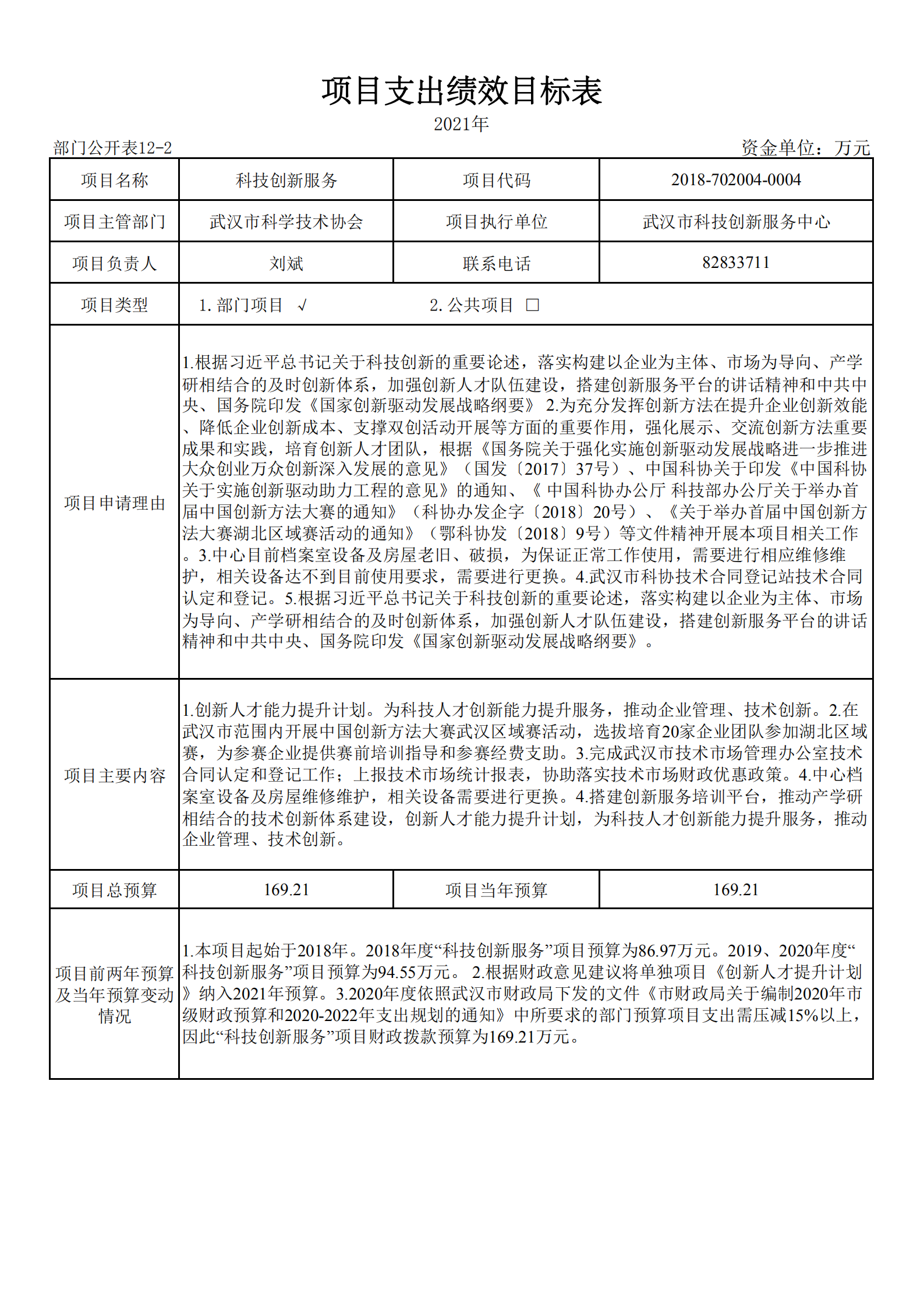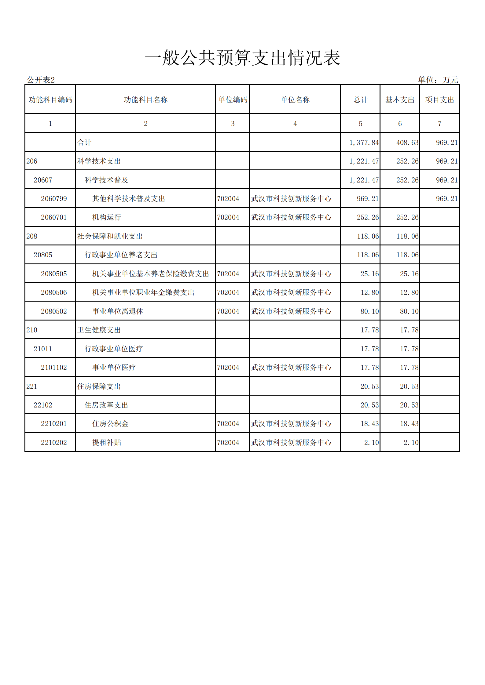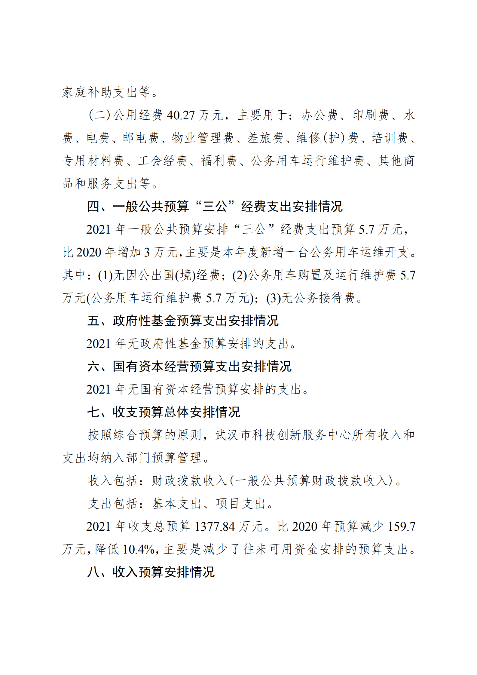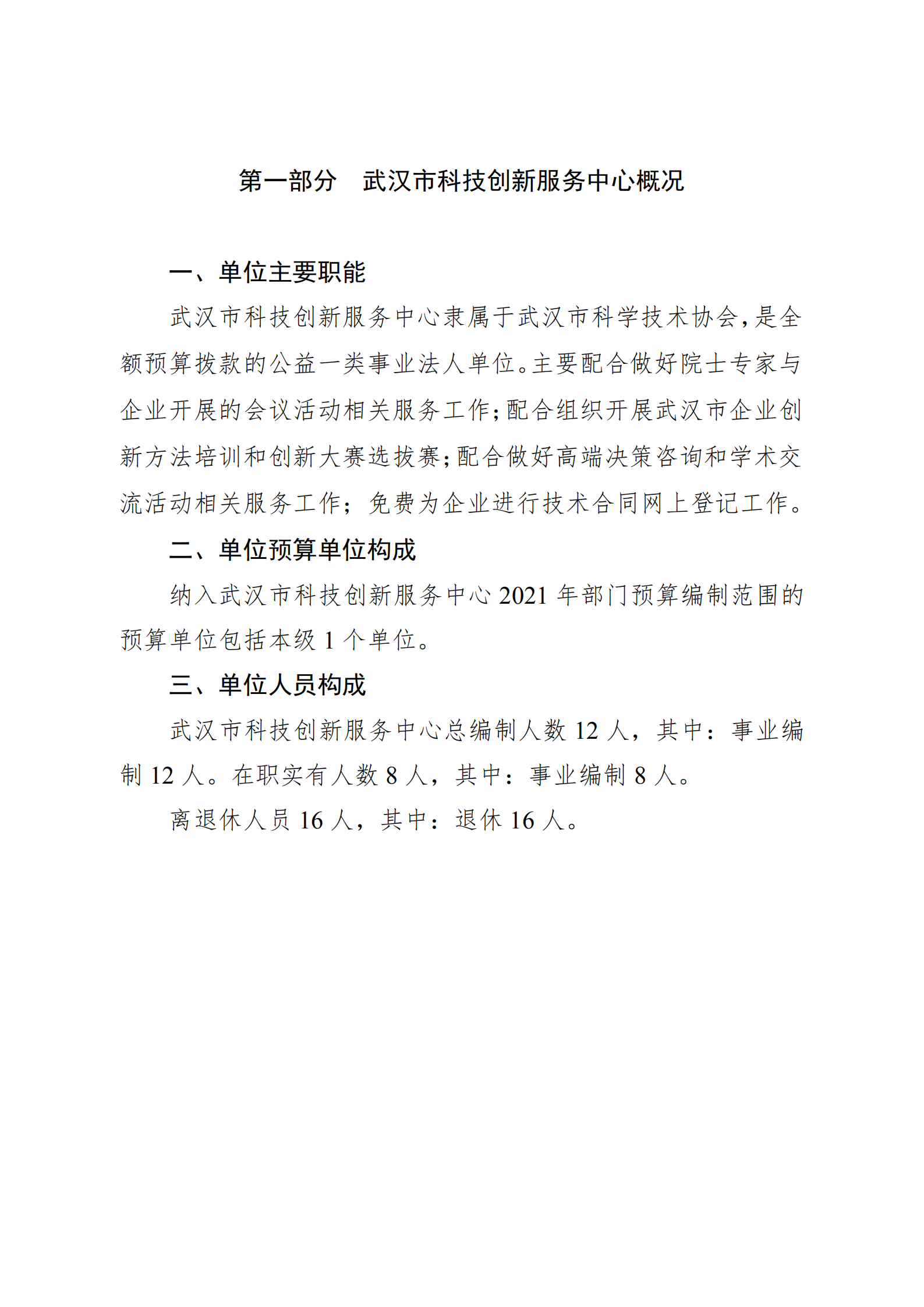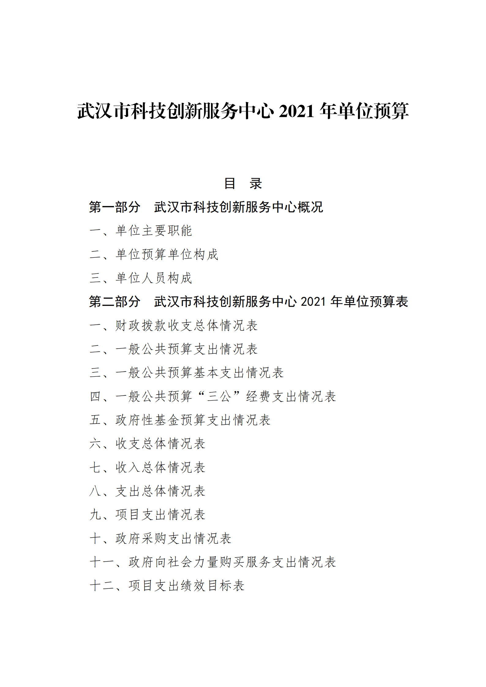 武汉市科技创新服务中心2021年单位预算