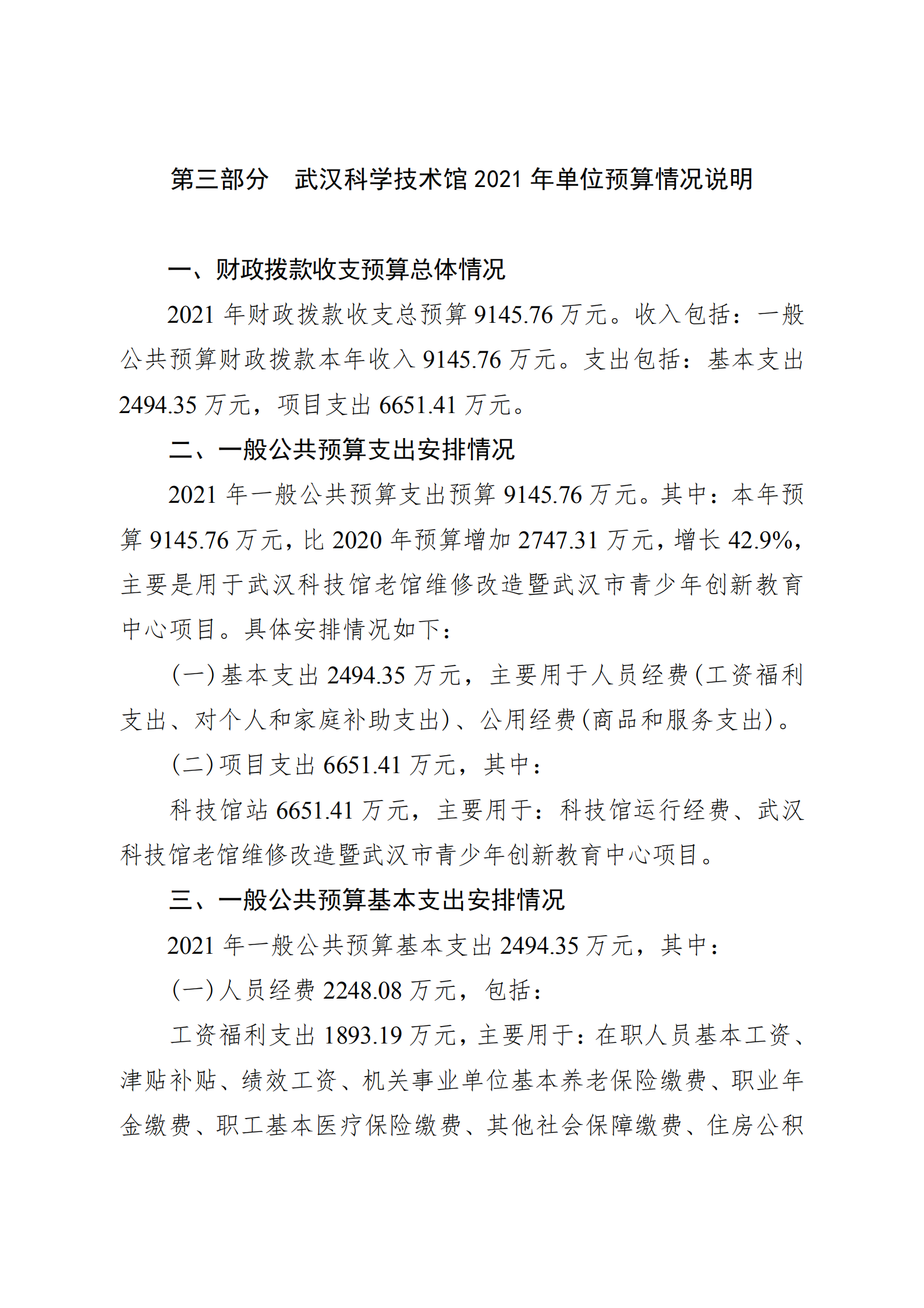 武汉科学技术馆2021年单位预算