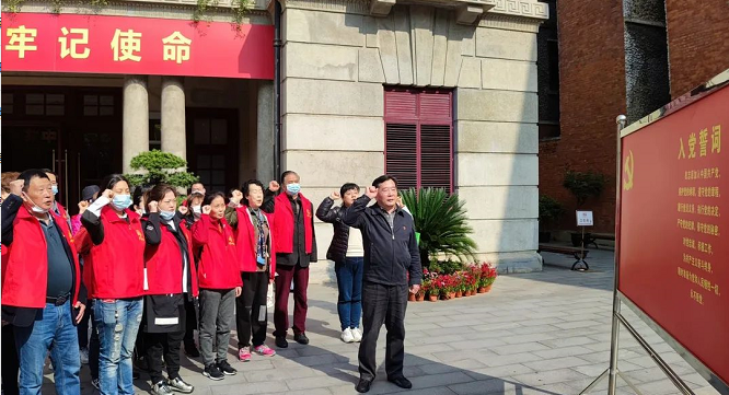 “我志愿加入中国共产党,拥护党的纲领,遵守党的章程,履行党员义务,执行党的决议,严守党的纪律……”在中共中央旧址纪念馆前,全体党员在江岸区科协副主席庄英年的带领下,面向党旗,右手握拳,重温入党誓词,铿锵恢宏的誓言将忠诚信念铭刻到每个人心中。