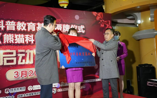 张若光为武汉市科普教育基地授牌。与会嘉宾共同宣布《熊猫科普大讲堂》正式启动。