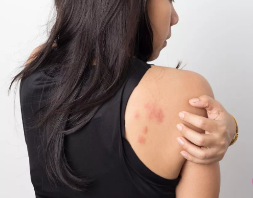 尘螨的刺激可能会导致皮炎发生,瘙痒伴随皮肤表面出现红色斑点。
