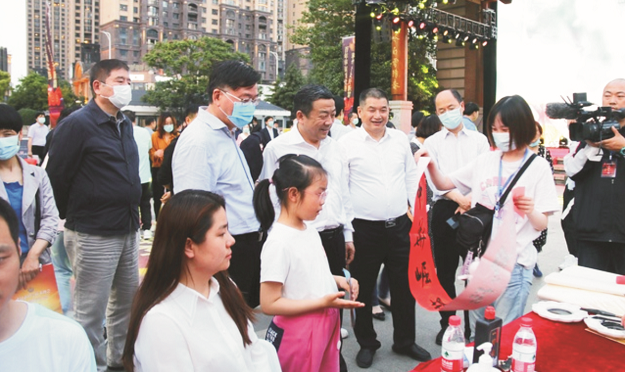 现场还设有科普互动区,有无人驾驶智能车、天文望远镜、科普大篷车等科技体验;有书法家挥毫,写主题对联;有画家为观众速写漫画……亮点纷呈,引市民争相体验