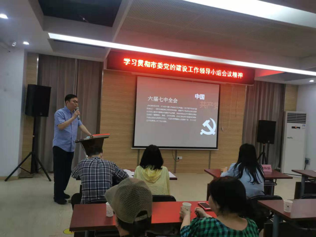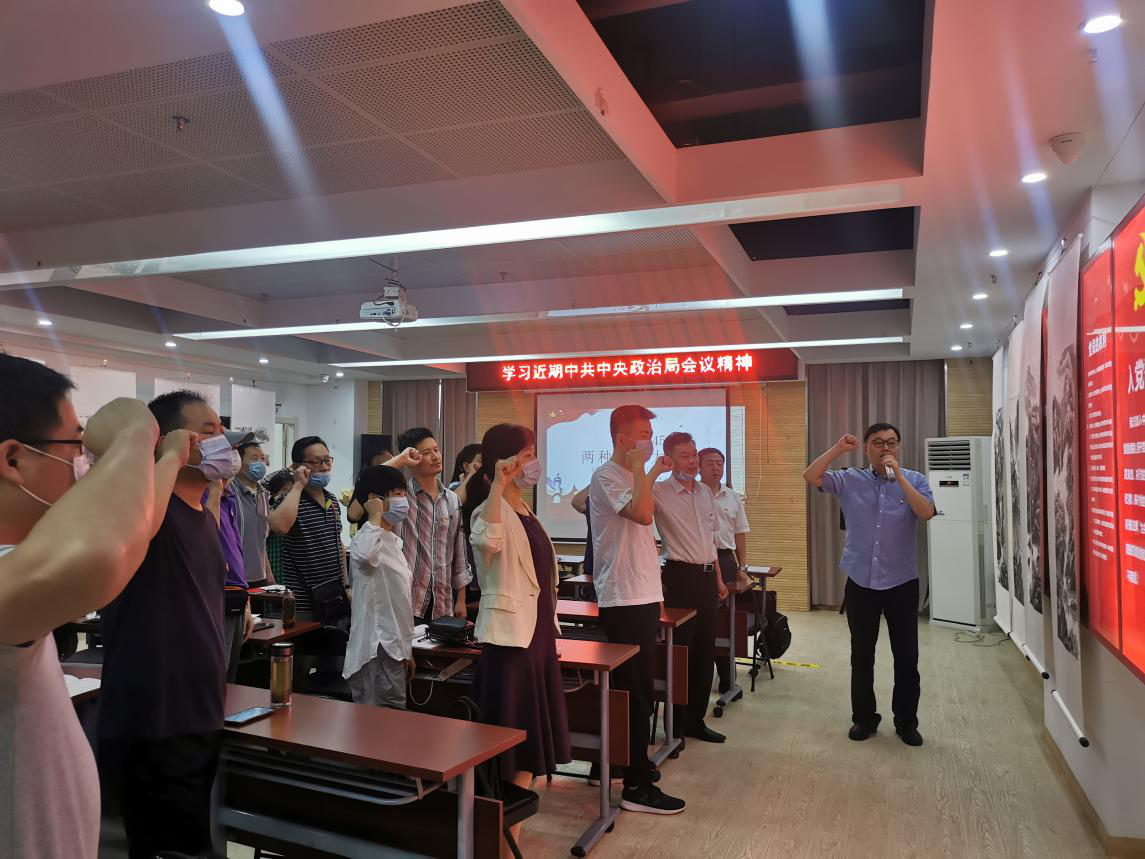 在社区党员活动中心,市科协党组成员、副主席、机关党委书记张若光带领全体党员重温入党誓词并做题为《1945两种命运大抉择》党史教育主题党课。