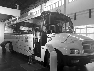 新版国家标准《专用校车安全国家标准》5月1日实施后,国内多家车企各施所长,开始了新校车研发竞赛。在5号馆北京汽车展台,长鼻子,黄皮肤的福田欧辉校车吸引了众多参观者的驻足,一些带小孩的家长甚至要求带孩子体验一把。
