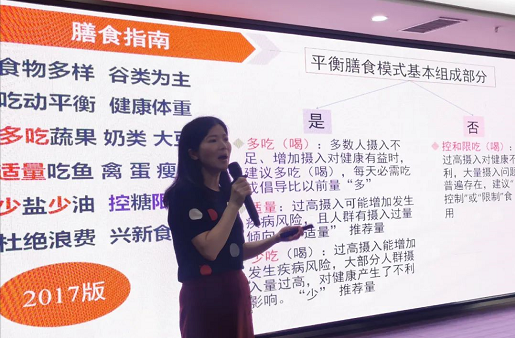 “吃什么?怎么吃?”唐玉涵分析了日常食品中所含的营养成分。针对天气炎热的特点提醒居民们要注意合理膳食、安全用药、定期检查身体,自觉养成科学健康的生活方式和行为习惯;逐步减少菜品盐油糖用量和人均盐油糖摄入量。“在合理的膳食结构中,我们应该以谷类为主,要坚持日常身体活动,每周至少5天中等强度的身体活动,累计150分钟、每天主动运动6000步。”她指出要多摄入蔬菜水果,每天进食大豆和坚果 25 克,夏季饮食可以平衡膳食,食物多样化,保证营养齐全,做到清淡饮食。