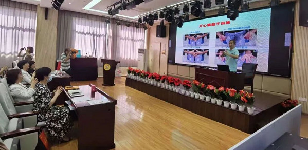 “双手五指依次对应敲击,拇指依次敲击四指,五指交叉抱拳,五指依次伸出握拳……”6月4日,2021年“院士专家进校园”活动走进武汉市江岸区黄陂路小学,华中师范大学教授郑晓边用一段手指操拉开科普讲座《教师的生涯发展与幸福力》的序幕。