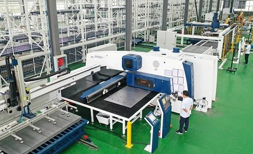 “这条高自动化、高柔性化生产线的建成,使我们长江电气的生产自动化率超过85%,月产量较以前增加1.5倍,智能高低压设备生产周期缩短50%,使生产线上的人员配置减少一半以上。”长江电气有关负责人介绍,该产线由长江电气与华工科技共同研发并完成工艺设计,解决了机械制造高自动化与高柔性化之间的矛盾,在华中地区首次实现智能化柔性生产线生产。整条生产线引进全自动冲减复合机、C型材机、智能立体料库、通快数控机床等高端先进设备,实现精益生产模式,最终以最优产品、最低成本、最短周期,对小批量、多品种的市场需求作出迅速响应,大大提升企业核心竞争力。