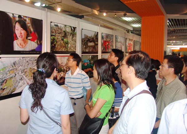 300多张来自抗震一线的摄影图片,是我们新闻工作者在地震发生后,冒着生命危险,第一时间深入余震不断的灾区,用手中的镜头拍下一幕幕感人的场景,将一个个刻骨铭心的瞬间变成永恒,一幅幅感人至深的画面,用无声的语言诉说着无尽的悲情与无穷的力量,展现出中国人民在灾难面前迸发出的空前的凝聚力和向心力。大地震的惨烈与救灾的伟力,深深地震撼着我们,大家久久驻足。通过图片展览,我们深深感受到,在大灾面前中国人民所表现出的众志成城、团结协作的凝聚力和不屈不挠的顽强精神,加深了我们对第一现场的认识,加深了对抗震救灾的认识,也对新闻工作者的责任感和敬业精神充满了无限的敬意。