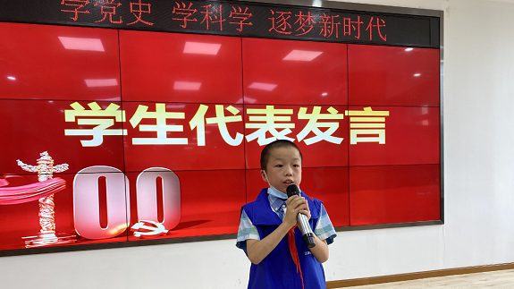 当天,现场领导们为学生代表授课程包。沈阳路小学金易周发言说,作为一名小学生,要勤学思敏,用科学知识武装头脑,开拓认知,从小打下坚实的科学知识基础,为祖国争光添彩。