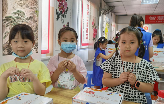 家住温馨苑的张睿晨将做好的宝石项链送到妈妈手中,第一次参加探秘营的她兴奋不已,在课堂上与老师积极互动,动手实践环节帮助身边小伙伴合作完成作品,得到了大家的认可。
