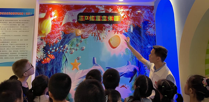 “学党史 学科学 逐梦新时代”,为庆祝中国共产党建党100周年,深入社区开展科普建设服务活动,让青少年在参与中培养创新精神和创新能力,激发其参与科学实践探究活动的兴趣,持续提高科学文化素质。武汉市江岸区魔法启程青少年服务中心于2021年7月30日上午在江岸区四唯街袁家社区科技馆举办“3D技术新世界,感应系统妙趣生”主题魔术科普活动。