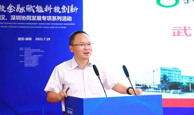为了深化科技金融产品和服务创新,进一步拓宽科技型企业融资渠道,促进科技成果转化。7月29日下午,以“科技金融赋能科技创新”为主题的2021武汉、深圳协作发展专项系列的第一场活动,在武汉和深圳同步举行,两地通过视频直播的方式为技术创新公司提供金融工具、机构、市场和金融技术综合系统;也通过武汉和深圳的协同发展,展示在新时代背景下,政府、高校、资本和企业如何有效地对接促进科研成果从产品化到产业化再到商业化发展落地,利用科技金融产品和服务创新,进一步拓宽科创企业的融资渠道,促进技术成果的转化。