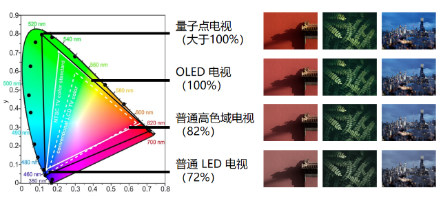 由于量子点激发光的半峰宽非常窄,且发光峰位置连续可调,所以能够提高显示色彩的纯度以及色域的广度,极大地提升显示效果。