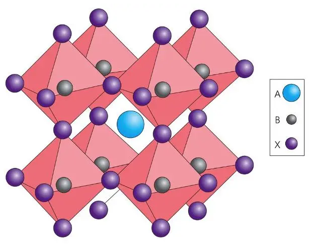 典型的铅卤钙钛矿为ABX3晶型:A指的是铯离子或者甲胺离子等,B指的是金属离子,如铅离子等,X指的是卤素离子,如碘离子,溴离子和氯离子等。也就是说,铅卤钙钛矿发光材料既不含钙,也不含钛,更不是一种矿石,整个晶体是由铅离子被六个卤离子包围所形成的类似正方体作为骨架结构,骨架中间插入有无机或者有机离子。