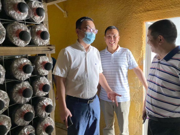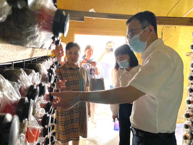 张若光一行实地调研了蓝色果香生态农业公司蓝莓基地和天添食用菌科技有限公司,听取了相关负责人介绍基地运行情况以及科普工作开展情况,深入生产一线了解食用菌产业的生产、效益情况,分析讨论制约产业发展的瓶颈,探寻基层科协组织助力产业持续稳定发展的新途径。