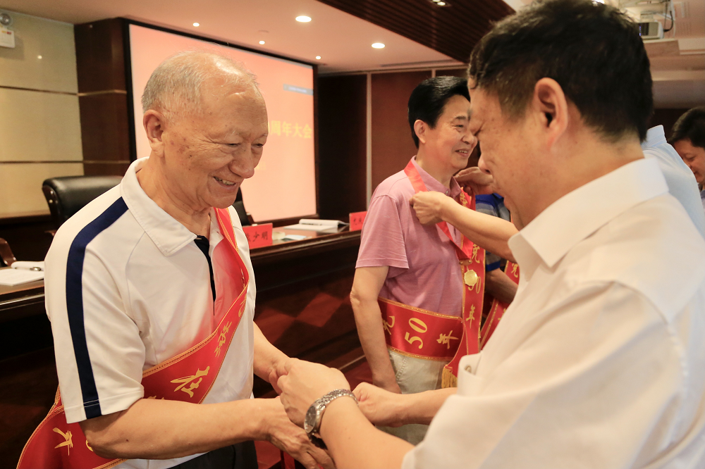 大会在庄严激昂的音乐中开场,全体参会人员起立奏唱《国歌》。随后会领导向离退休老党员代表颁发“光荣在党50年”纪念章。据介绍,“光荣在党50年”纪念章为党中央2021年首次颁发,颁发对象是党龄达到50周年、一贯表现良好的党员。今年市科协系统共有10名离退休老党员获得纪念章,参加现场颁发活动的有6位,由于身体等原因还有4位老党员不能来到现场,会后会领导还将上门把纪念章送到他们手中。其中,获得纪念章的老党员庄志宽和陈文涛在接受本报记者采访时表示,一位党员就是一面旗帜,必须要走在前列、干在实处,全心全意为人民群众服务。他们寄语年轻党员立足本岗,投身科技创新、展现作为担当。