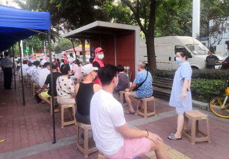 因全民核酸检测工作时间紧任务重,各社区急缺志愿者。中交二航局得知江岸区岱山社区和百步亭文卉苑社区急缺志愿者后,快速派遣党员、团员志愿者前往核酸检测点驰援。