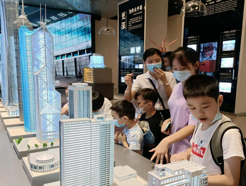 以古为镜,可以知兴替。学习历史是为了更好的走向未来。来到现代建筑展厅。讲解员向孩子们介绍到,如今的我们已经拥有高空吊塔技术,依靠科学进步成功的修建了世界第二高建筑上海中心大厦,可以说是真正做到了“手可摘星辰”