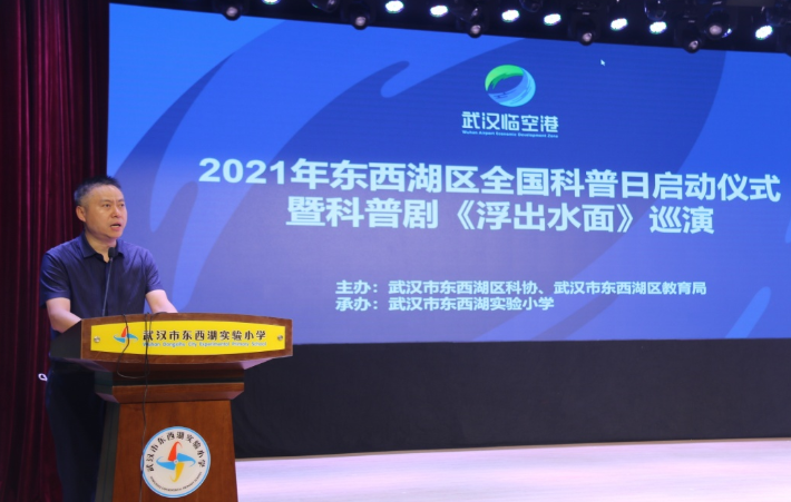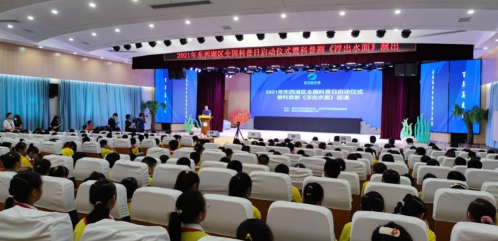 9月9日上午,由东西湖区科协、区教育局联合举办的以“百年再出发,迈向高水平科技自立自强”为主题的“2021年东西湖区全国科普日启动仪式暨主场活动”在武汉市东西湖区实验小学拉开帷幕。区科协主席戴晓春,区教育局副局长陈良俊,区科协副主席黄文丽、黎兰献,部分学校的科技老师及学生共计400余人参加本场活动。