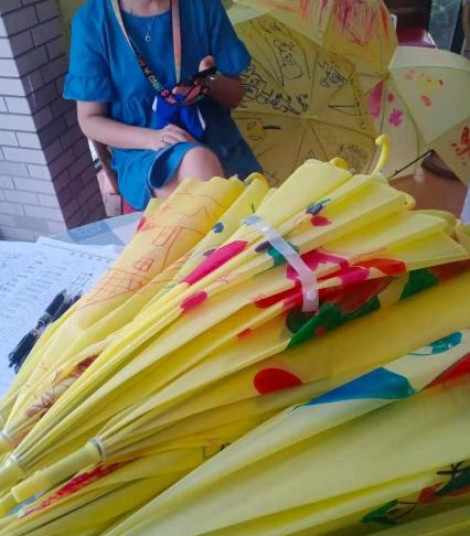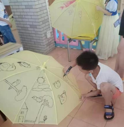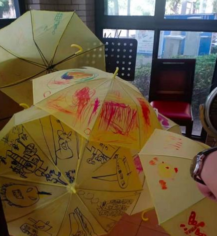 活动开始,由老师们向孩子们讲解了绘伞的方法和思路,社区志愿者们帮孩子们撑开小伞,鼓励孩子们放开想象,在小伞上尽情挥洒。孩子们在老师和家长的帮助下,绘制出一把把漂亮的小伞。