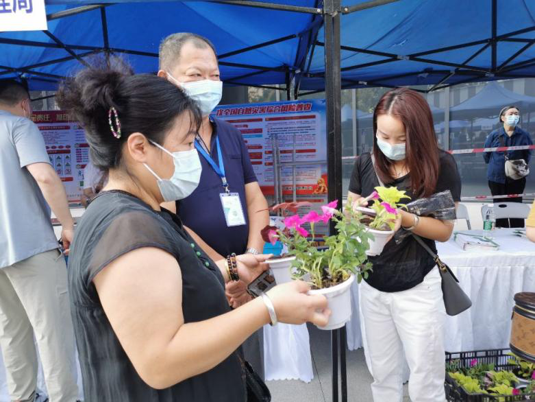 “哇,这个牵牛花真漂亮!”“这个绿叶子的植物会不会开花啊?”在林业局的展台前,来领取绿植的市民在志愿者的引导下,有序排队,等待选择自己心仪的绿植。林业局工作人员跟记者说,其实种植盆栽是一门技术活,施肥和浇水多少都涉及到存活率,虽然市民的热情非常高涨,但还需认真听专业人员的指导和示范,才能把花养好。
