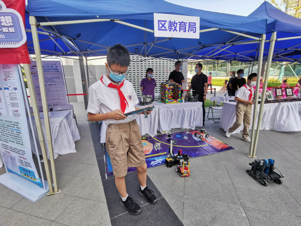 当天的启动仪式现场,江汉区教育局展台展示了中小学科技科普活动编程机器人、激光雕刻作品等实物,十分引人注目。“这些都是小学生和初中生就能完成的科技作品,孩子们对编程特别感兴趣,我平时也会进行辅导,及时解决他们在组装时候出现的问题,培养他们的科技兴趣,孩子们很享受完成一项作品所带来的成就感。”负责教育局展台的老师向记者介绍。