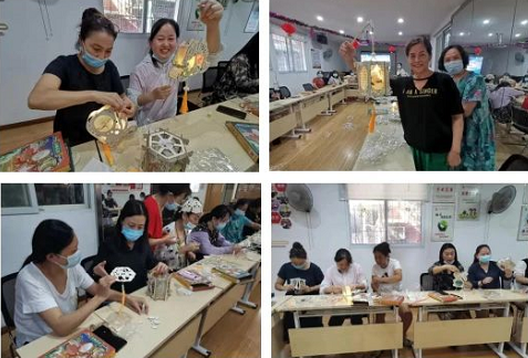 随后,爱熙社工带领大家手工制作木质“走马灯”,感受古人高超的智慧。社工通过视频及PPT简单介绍了“走马灯”制作流程。大家开始动手制作,现场一片欢声笑语,大家一边制作走马灯,一边彼此交流制作心得,不一会儿,一个个色彩各异的走马灯就制作完成了。看着自己制作的走马灯,居民们都露出了满意笑容,并纷纷打开走马灯投影灯光拍照留影。