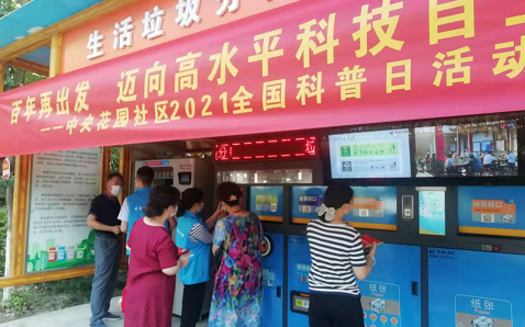 9月15日,南湖街中央花园社区科普志愿者们在小区投放最新的第五代智能垃圾分类箱,现场讲解“分类积分”使用方法和程序运用。居民每一次的正确投放回收,都会在手机里进行相应的积分。可以在旁边的自动贩售机兑换垃圾袋等生活物资。另外一部分科普志愿者们在林荫道便民秀场服务的人群中宣传科普教育和垃圾分类知识现场迎来了不少居民领取科普读物。