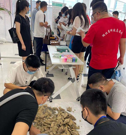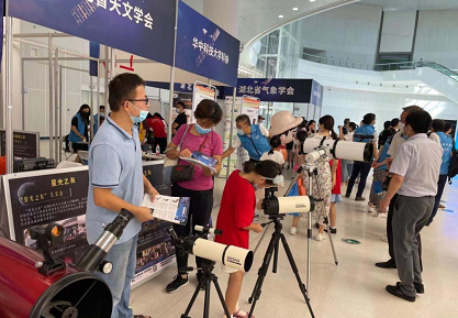 活动现场大家共同见证了仪式的揭幕,随后参观了现场科普展区。在湖北省天文学会的展台前,小朋友志愿者们观察到了时空旋涡——黑洞的神奇之处;在中国地质大学逸夫博物馆的展台,小志愿者们亲手触摸到了各种化石,感受到了史前世界的沉淀与神秘;而在湖北省核学会的展台前,志愿者们更是进一步了解了建国以来中国核工业的发展成就,深刻体会到了“百年再出发,迈向高水平,科技自立自强”重大意义。