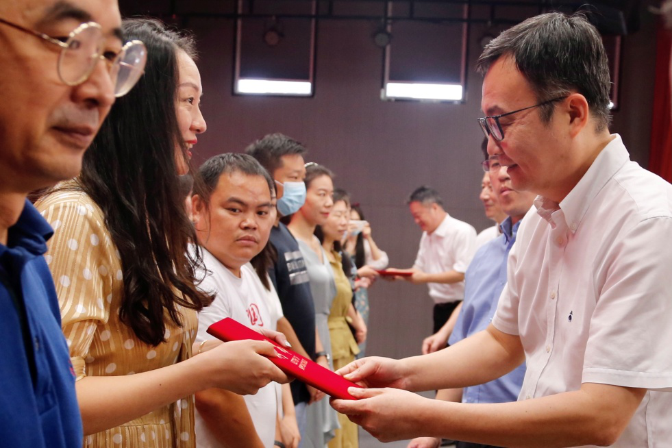 嘉宾为获得优秀指导老师奖和组织奖的代表颁奖。