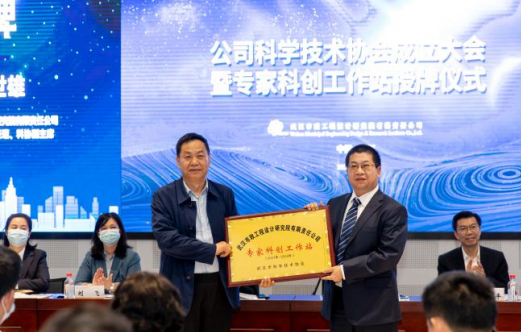 专家科创工作站授牌仪式环节,市政设计院介绍了专家科创工作站建设情况,武汉大学教授方正发言表示,将进一步加强与市政设计院的密切合作关系,把论文写在中国大地上,让更多的创新种子在设计院开花结果。市科协党组成员、副主席熊少明为方正教授发放专家聘书,为市政设计院专家科创工作站授牌。
