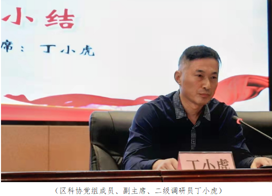 区科协党组成员、副主席、二级调研员丁小虎作培训小结。他表示,“科协”是科学技术工作者的群众组织,它是中国共产党领导下的人民团体,是代表科技工作者的群众组织,是党和政府联系科学技术工作者的桥梁和纽带,是国家推动科学技术事业发展的重要力量。科普工作者的工作都是以“贴近群众、贴近生活、贴近实际”为工作原则。近年来,在黄陂区各级科协组织和广大科技工作者的努力下,黄陂区成功创建了2011-2015年全国科普示范区、2016—2020年全国科普示范区。各基层科协“三长”(医院院长、学校校长、农技站站长)充分发挥各自行业优势,认真履行职责、主动担当作为,开展各具特色的科普活动,为创新驱动发展、助力乡村振兴做出了积极贡献。区科协将继续探索提高公民探索提高公民科学素质的有效手段和方式,创新开拓基层科普阵地,形成可复制可推广的、有示范作用的典型经验和模式,树立有一定影响力的科普品牌。