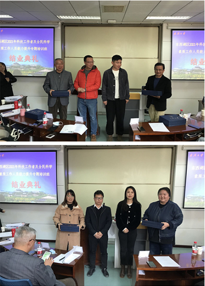 最后,区科协主席戴晓春、副主席黎兰献、武汉大学经济与管理学院高层管理培训与发展中心主任鄢鸿平等为大家颁发结业证书,随着证书的颁发,此次培训活动也画上圆满的句号。