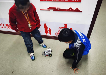 同学们各自在空旷地带试验自己组装好的机器避障小车