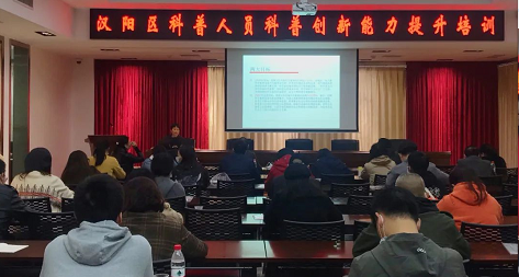 10月20日上午,汉阳区科协举办科普人员科普创新能力提升培训,党组成员、副主席郑华作题为“泛在科普”的培训课,汉阳区各街道科协分管领导和科协秘书长、区全民科学素质领导小组成员单位分管领导、科室负责人以及部分中小学校科普工作者近50人参加培训。
