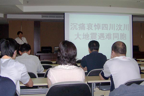 5月19日下午,市科协全体干部职工在机关10楼会议室集中默哀3分钟,沉痛哀悼四川汶川大地震中遇难的同胞。继5月15日科协捐款22650元之后,在今日举国哀悼,国旗降半,笛报嘶鸣之时,科协党组书记、主席卢光发同志再次解囊,向四川地震灾区捐献600元,副主席杨军同志捐款500元。此外,有些同志通过银行、互联网、居住社区、出差路途等多种渠道自发向四川地震灾区再捐善款。据不完全统计,捐献金额达3190元。
