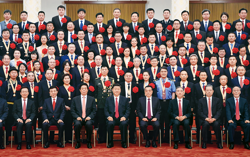 2021年6月29日,庆祝中国共产党成立100周年“七一勋章”颁授仪式在北京人民大会堂金色大厅隆重举行。习近平等领导同志在颁授仪式前会见全国“两优一先”表彰对象。