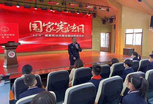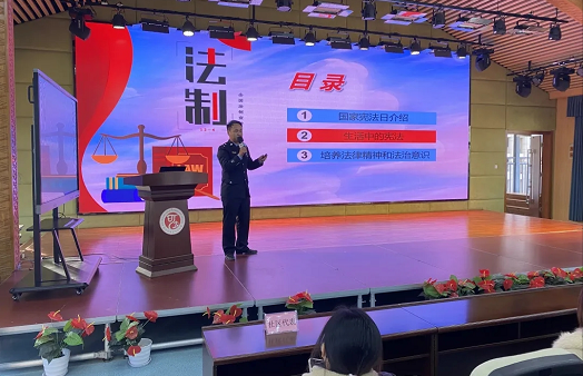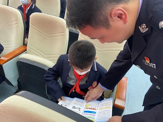 宣传活动中,中国好人沈胜文给现场学生介绍了国家法律体系,派出所民警胡康培根据学生年龄和心理特征,通过现场讲座的方式,宣讲了宪法中与日常生活密切相关的重点内容,“宪法就像空气一样,时刻陪伴着大家,与大家的生活息息相关。”形象的比喻,立刻吸引了孩子们的注意。针对在校学生安全防范意识薄弱的实际,胡康培结合典型案例,宣传讲解了防电信网络诈骗、防校园欺凌、校园安全等方面的法律法规和安全防范常识。