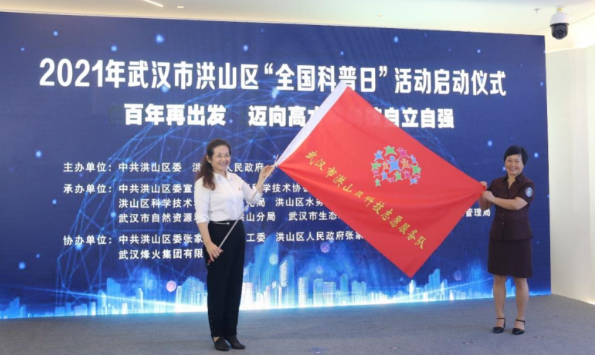 郑华为洪山区科技志愿服务队授旗