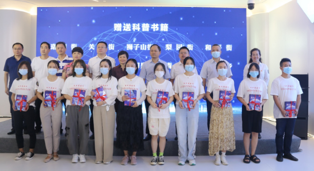 活动现场,市区领导和嘉宾为10个街乡代表赠送科普书籍