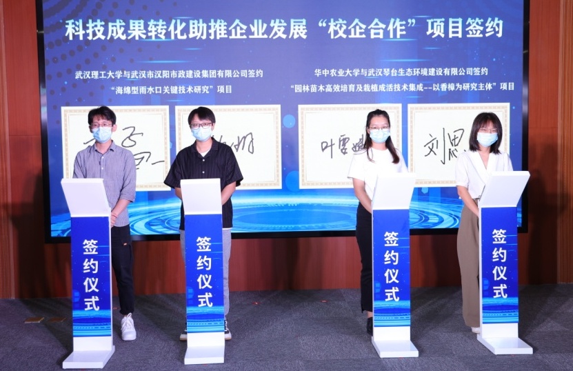 武汉理工大学、华中农业大学分别与汉阳市政建设集团有限公司、武汉琴台生态环境建设有限公司签订“科技成果转化”协议。